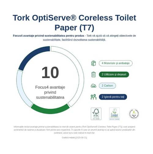 Beneficiile de sustenabilitate Focus4 Tork subliniază angajamentul Tork de a dezvolta soluții de igienă inovatoare și durabile, avantajoase pentru afaceri, oameni și mediul înconjurător.